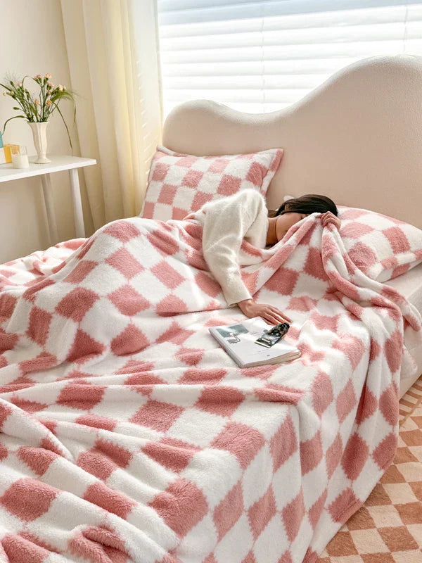 Fluffy Pink Plaid Flannel Blanket Bedroom Sofa Throw Blanket Travel Camping Soft Plaid Multifunctional Blankets for All Seasons