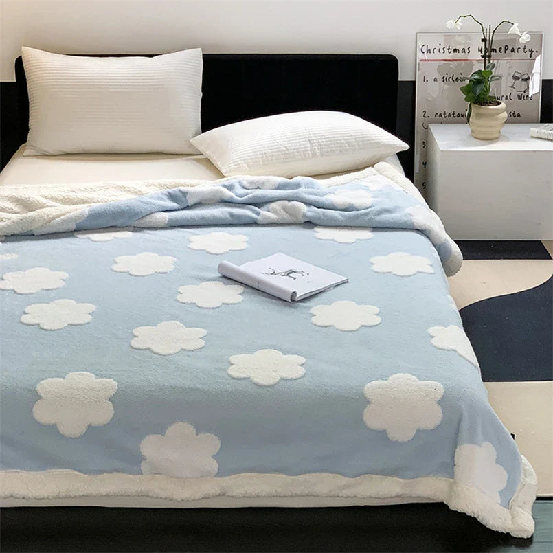 Ins Sweet Bow Casual Blanket Autumn and Winter Thickened Lambskin Blanket Quilt Cover Home Simple Sofa Decorative Blanket